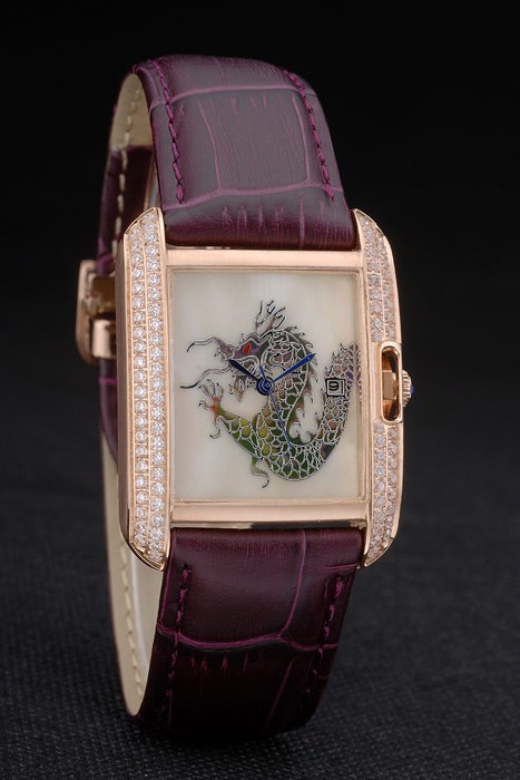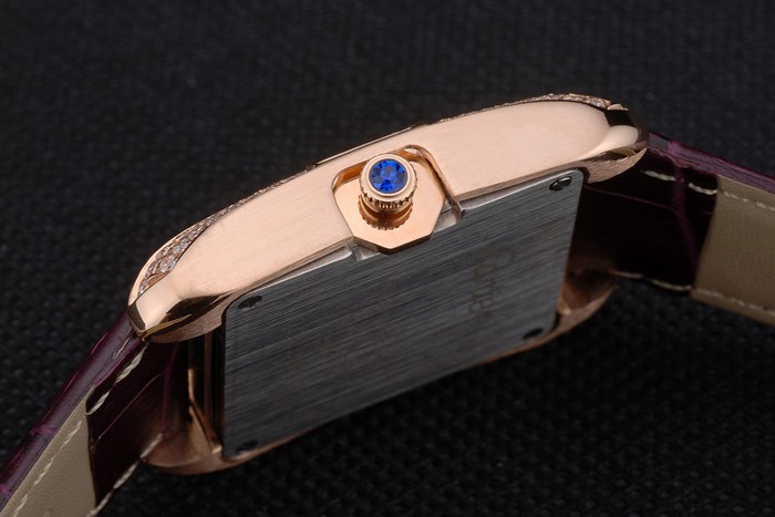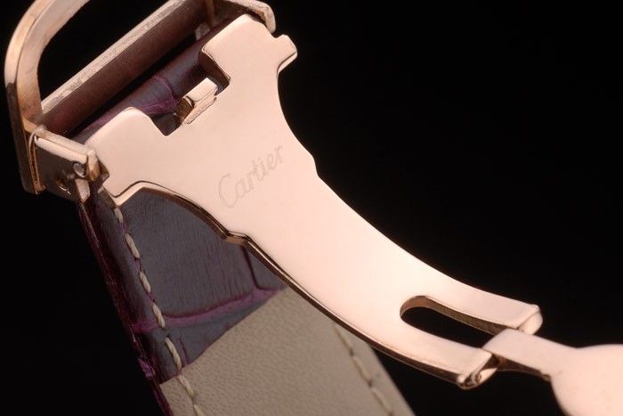 Bracelet de acero inoxidable: el calor correa de piel de cocodrilo de color púrpura en relieve Cartier rosa de 18 quilates chapado en oro plegable en cierre de hebilla