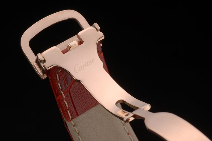 Bracelet de acero inoxidable: el calor correa de piel de cocodrilo de color rojo en relieve Cartier rosa de 18 quilates chapado en oro plegable en cierre de hebilla