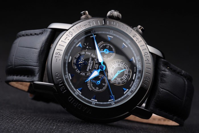 Bracelet acero inoxidable : calor en relieve correa de piel de cocodrilo negro Audemars Piguet con Audemars Piguet grabado iónico chapado plegable en clasp
