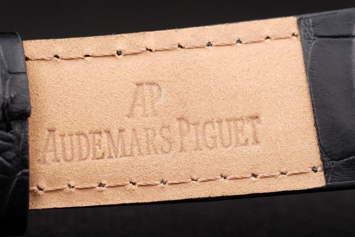Bracelet de acero inoxidable: El calor en relieve correa de piel de cocodrilo negro Audemars Piguet con Audemars Piguet grabado plegable en acero inoxidable clasp