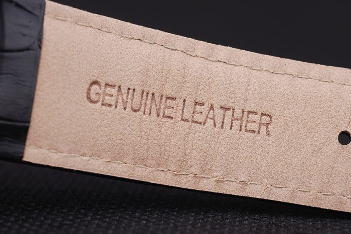 Bracelet de acero inoxidable: correa de piel de cocodrilo Negro con el calor en relieve Audemars Piguet nombre y el logotipo y un Audemars Piguet inscriben rosa de 18 quilates chapado en oro-flip-sobre el gancho clasp