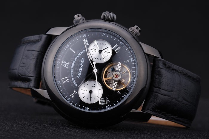 Crown: iones cutwork corona plateada con el logotipo de Audemars Piguet y dos coronas con teclas más pequeñas a cada lado de it