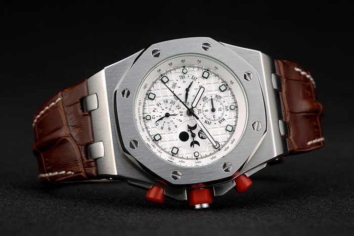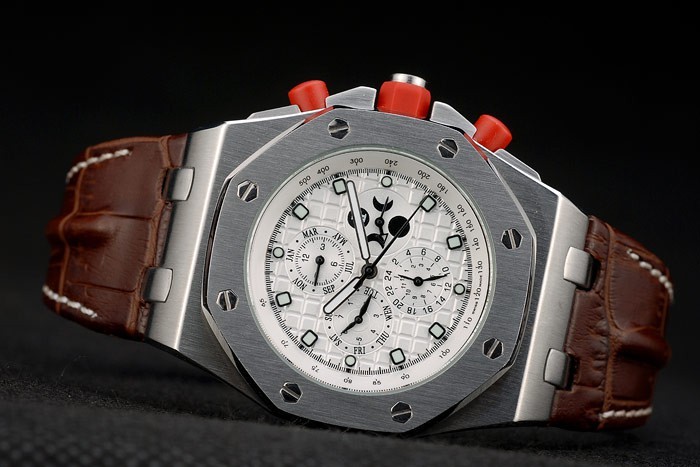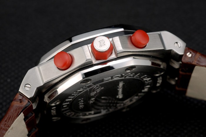 Crown: acero inoxidable logo Audemars Piguet grabado esmalte rojo corona hexagonal con dos pequeñas coronas botón esmalte rojo del empuje a ambos lados de it