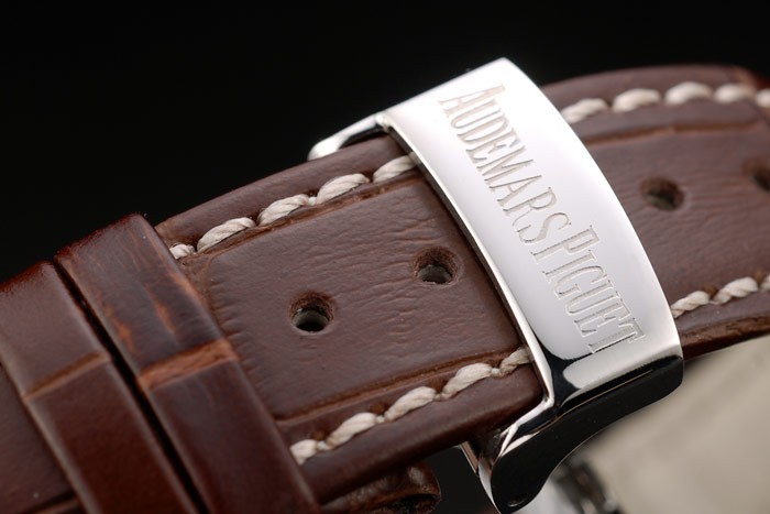 Bracelet de acero inoxidable: correa de piel de cocodrilo marrón Audemars Piguet calor en relieve con Audemars Piguet grabado pulido gancho de acero inoxidable clasp