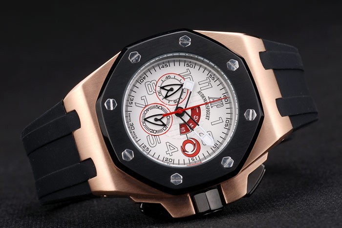 Crown: logotipo de Audemars Piguet grabado iónico chapado cutwork corona en septiembre entre un muro de protección con dos coronas rectangulares a cada lado de it