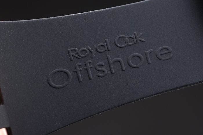 Bracelet de acero inoxidable: correa de caucho Negro con relieve de calor Audemars Piguet Royal Oak Offshore sello y un Audemars Piguet inscrito ion-plateado gancho hebilla clasp