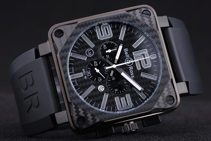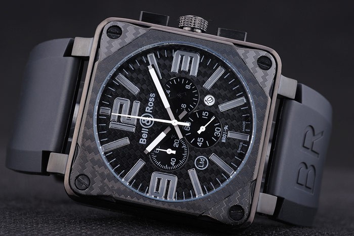Bracelet de acero inoxidable: El calor en relieve logotipo y código de producto correa de caucho negro de Bell&Ross con el ion -plated gancho hebilla clasp