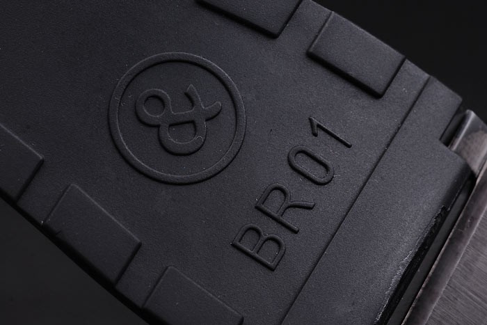 Bracelet de acero inoxidable: correa de caucho Negro con el logotipo en relieve de calor, el número de modelo y el producto código y BR grabado de iones de chapado de gancho hebilla de cierre de