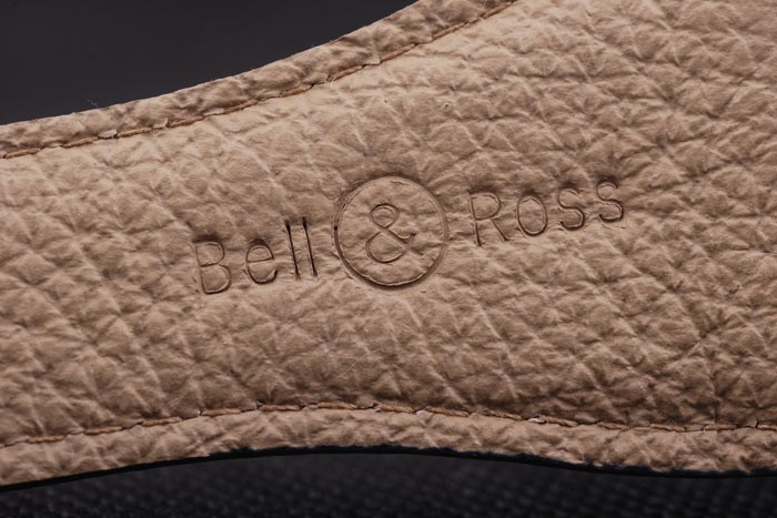 Bracelet de acero inoxidable: correa de cuero Negro con el sello en relieve de calor y Bell&Ross BR grabado de iones de chapado de gancho hebilla de cierre de