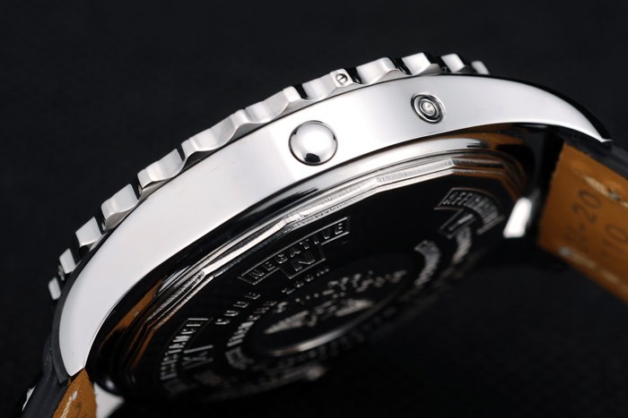 Este reloj tiene el vidrio AR. El color de la cara aparecerá diferentes colores dependiendo de cómo la luz cae sobre itBack: Acero inoxidable pulido complemento de vuelta con Breitling engravings