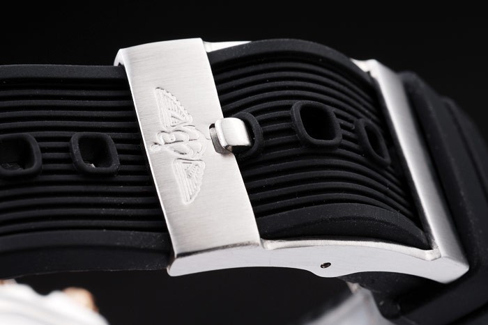 Bracelet de acero inoxidable: correa de caucho negro acanalado con grabado de acero inoxidable gancho hebilla de cierre con el logotipo de Breitling en top