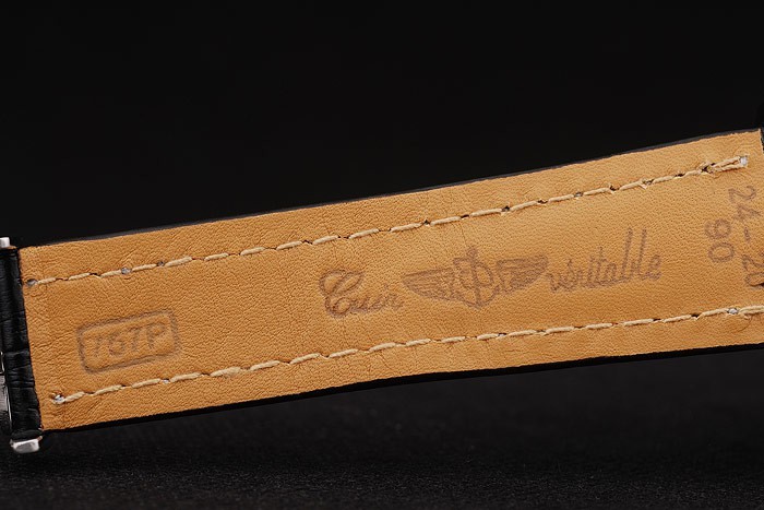 Bracelet de acero inoxidable: El calor en relieve correa de piel de cocodrilo negro Breitling con costuras de hilo blanco y un logotipo de Breitling grabado plegable en acero clasp