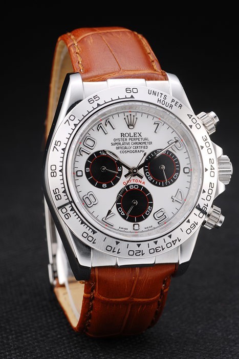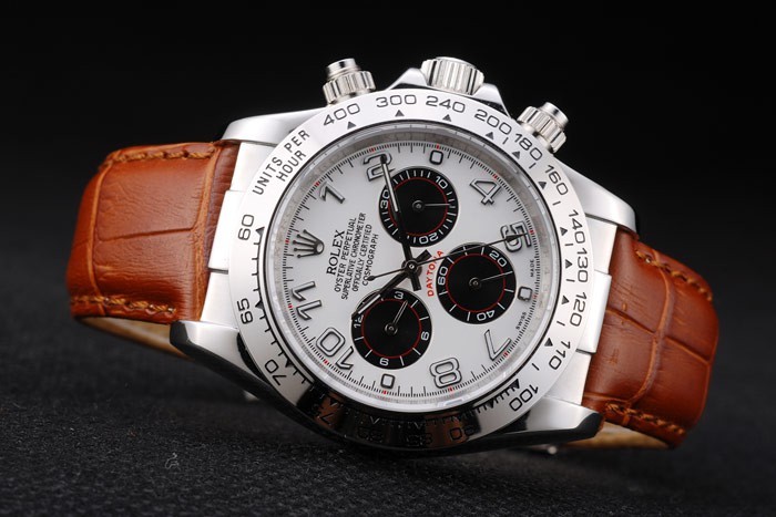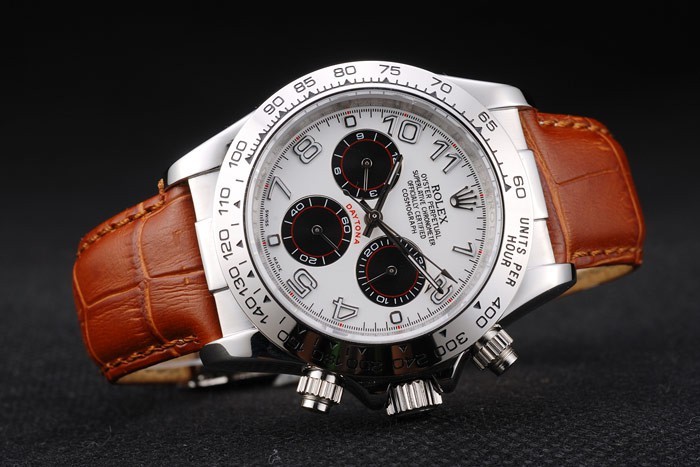 Caja de acero inoxidable Rolex Daytona esfera blanca Correa de cuero marrón