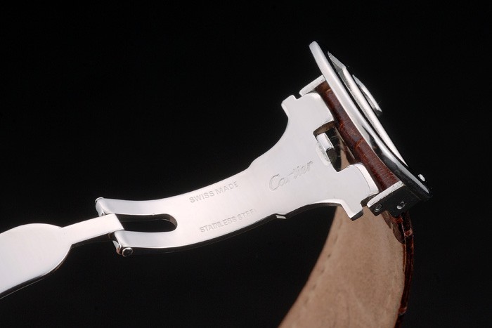 Bracelet de acero inoxidable: el calor Cartier en relieve correa de piel de cocodrilo marrón con acero inoxidable pulido plegable en cierre de hebilla