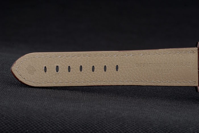 Bracelet de acero inoxidable: correa de piel de cocodrilo marrón en relieve de calor Officine Panerai con costuras de hilo blanco y esmalte marrón Panerai grabado gancho de la hebilla clasp