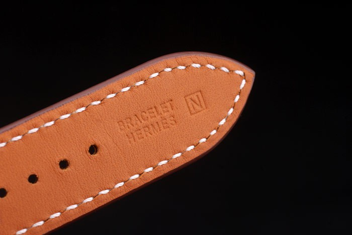 Bracelet de acero inoxidable: el calor de Hermes en relieve correa de cuero marrón con costuras de hilo blanco y Hermes grabado de acero inoxidable pulido gancho hebilla clasp