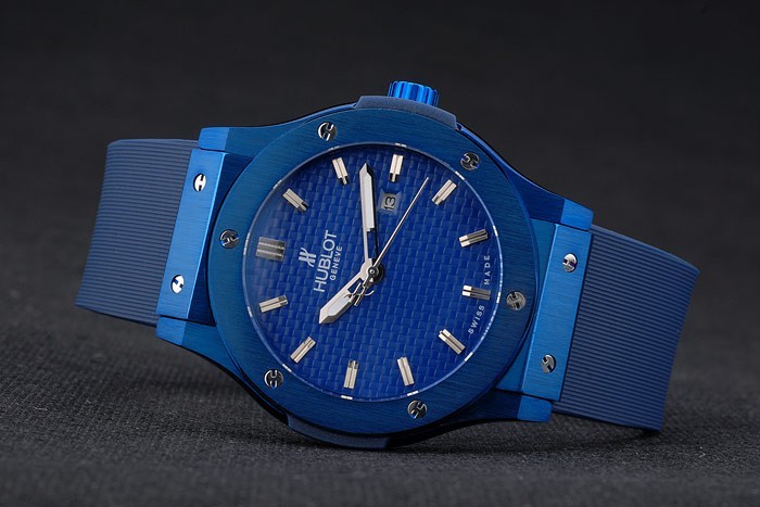 Crown: azul metálico corona calado de acero inoxidable con Hublot logo