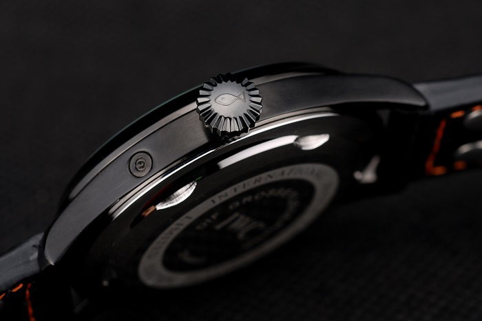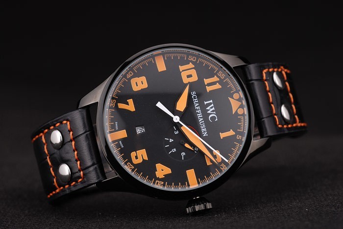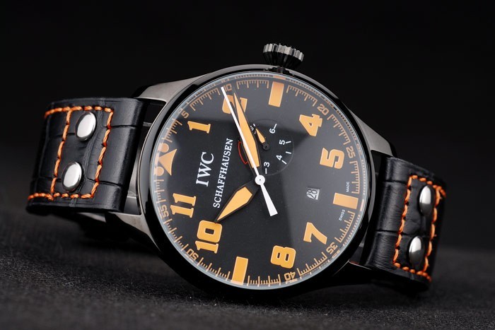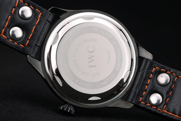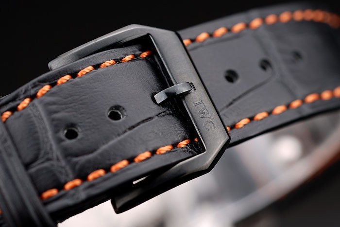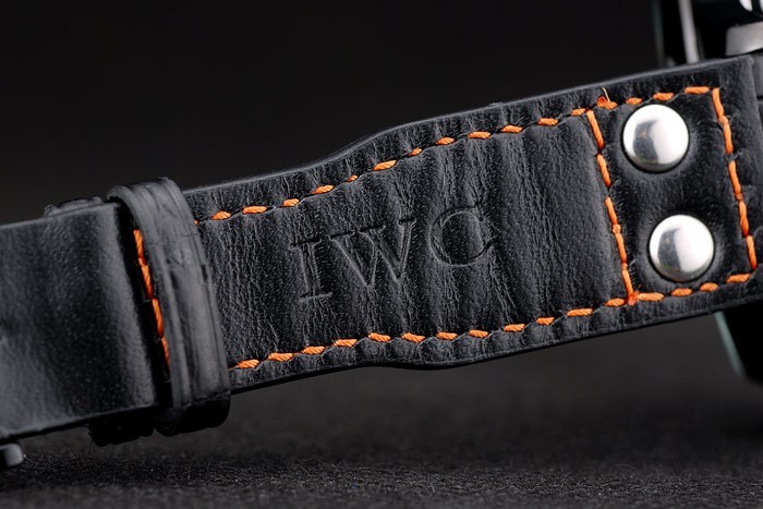 Bracelet de acero inoxidable: Correa CBI calor en relieve de cocodrilo negro de cuero con hilo de coser de color naranja y la CBI grabado iónico plateado de acero inoxidable gancho hebilla clasp