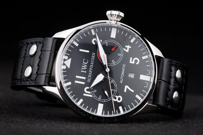 Bracelet acero inoxidable cepillado: correa de piel de cocodrilo negro de calor en relieve CBI con CBI grabado de acero inoxidable cepillado de gancho hebilla clasp