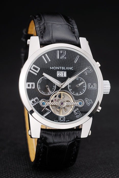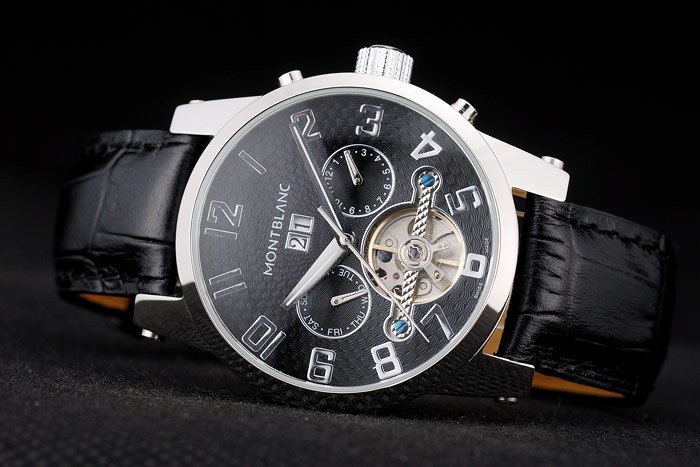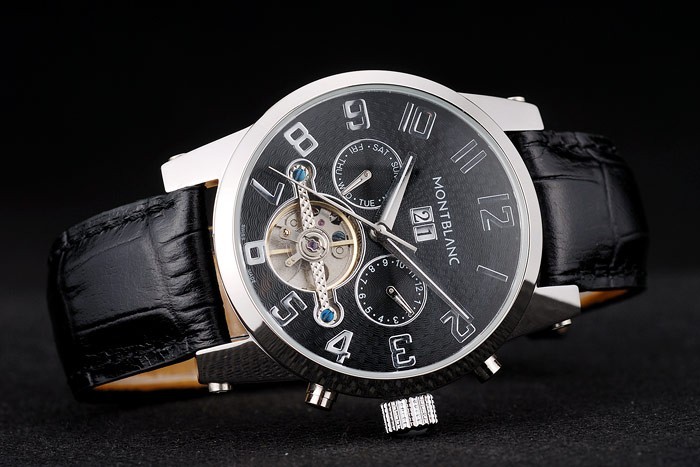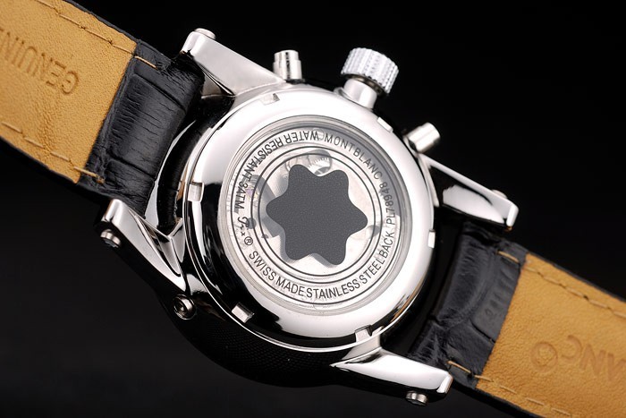 Crown: acero inoxidable pulido cutwork corona con logo Montblanc y dos botones coronas de empuje de acero inoxidable pulido en ambos lados de it