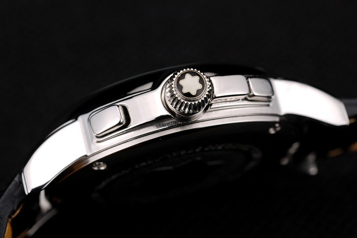 Crown: pulido corona calado de acero inoxidable con el logotipo de Montblanc y dos coronas de acero pulsador de acero pulido sobre su derecha y un botón pulsador coronar a su left