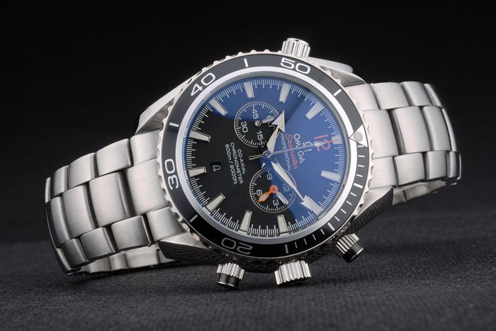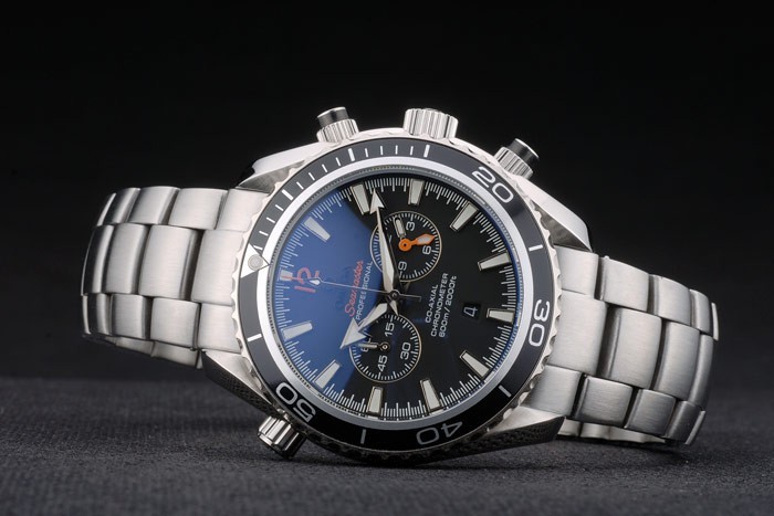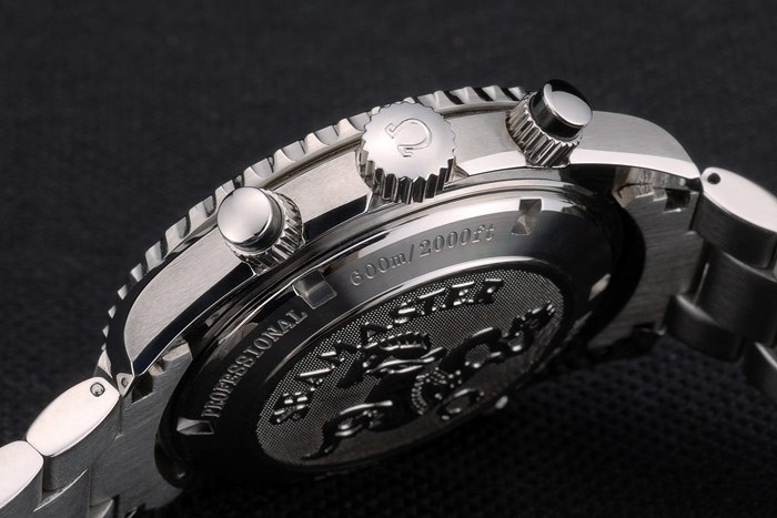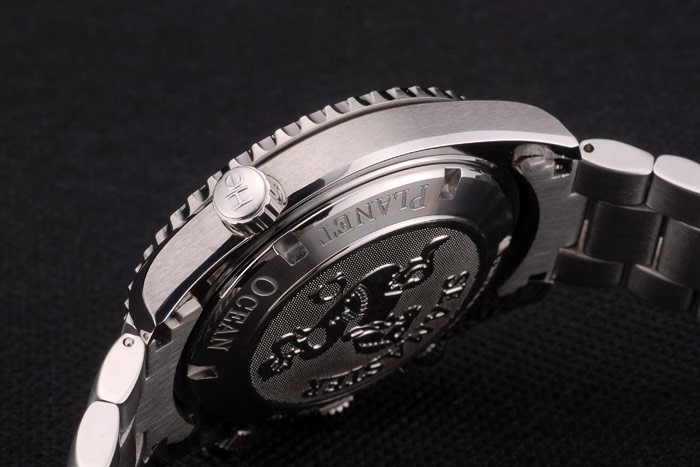 Volver: Acero inoxidable pulido complemento en la parte trasera con el logotipo de Omega y Seamaster Planet Ocean engravings
