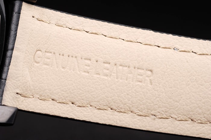 Bracelet: correa de piel de cocodrilo negro con costuras en blanco y calor en relieve sello Luminor Panerai y acero inoxidable gancho hebilla de cierre de ion-plateado con Panerai engraving