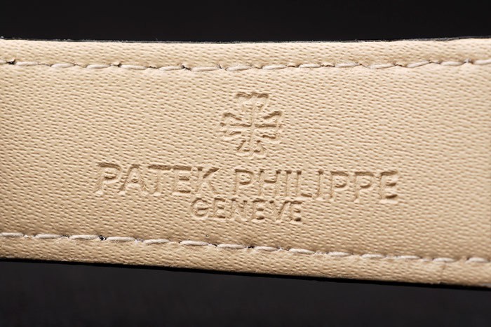 Bracelet de acero inoxidable: correa de piel de cocodrilo Negro con relieve de calor Sello Patek Philippe y pulido de acero inoxidable Patek Philippe logotipo de la hebilla del gancho clasp