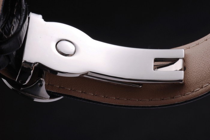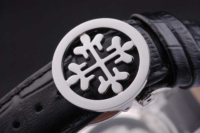 Bracelet de acero inoxidable: correa de cuero Negro con el sello de Patek Philippe y un pliegue de acero inoxidable en el corchete con logotipo de Patek buckle