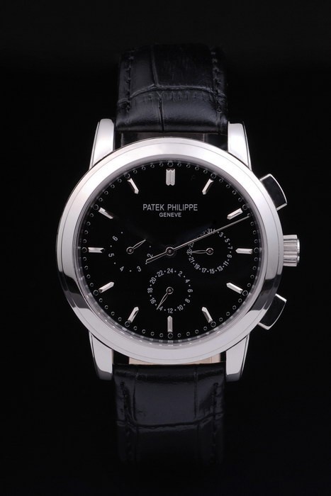 Crown: pulido corona de acero inoxidable con el logotipo grabado Patek y dos coronas más pequeños a cada side