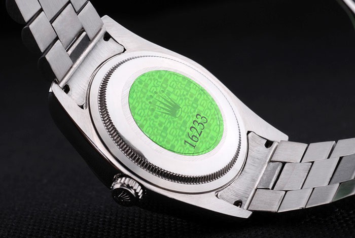 Volver: Acero inoxidable empuje en caso de vuelta con el verde Rolex logo stamp