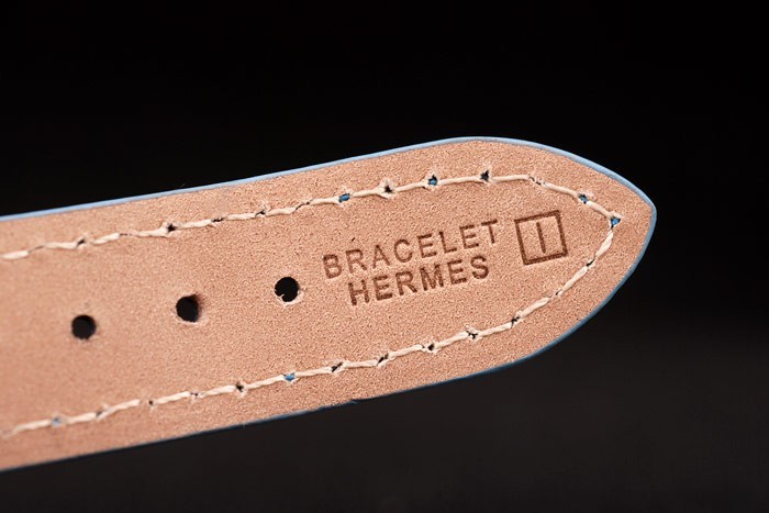 Bracelet de acero inoxidable: correa de cuero azul claro con el calor marca en relieve la pulsera de Hermes y Hermes grabado de acero inoxidable pulido de gancho de la hebilla