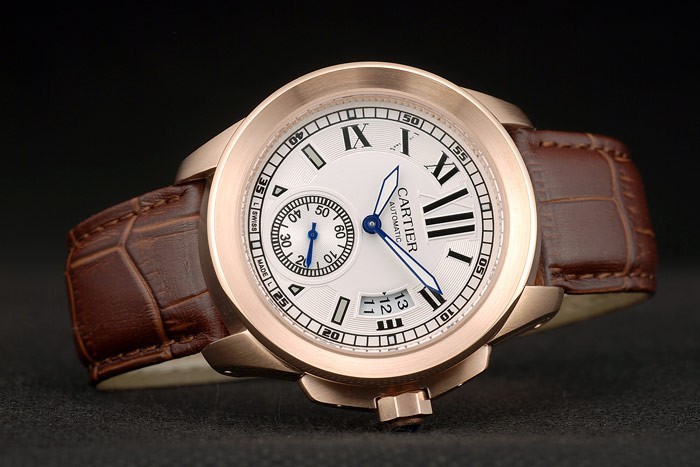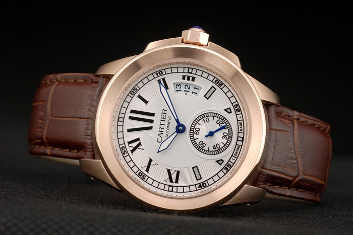 Bracelet: calor Cartier en relieve correa de piel de cocodrilo marrón con hebilla de Rose clasp