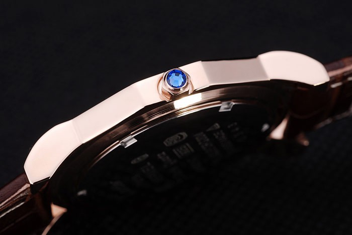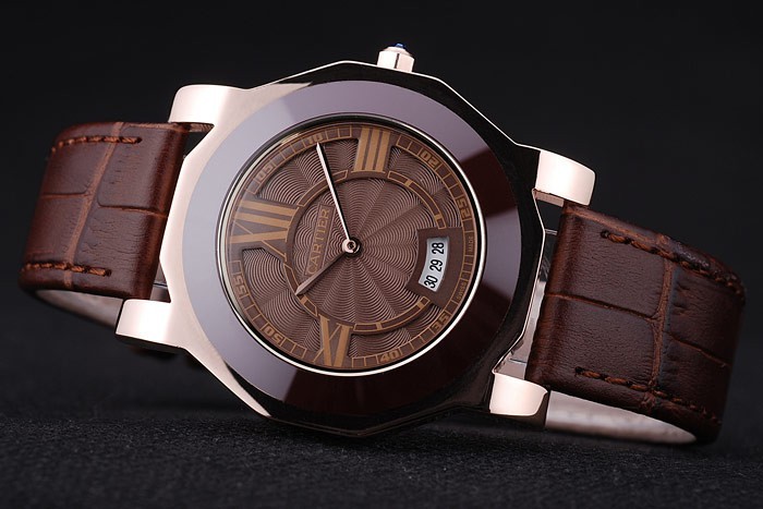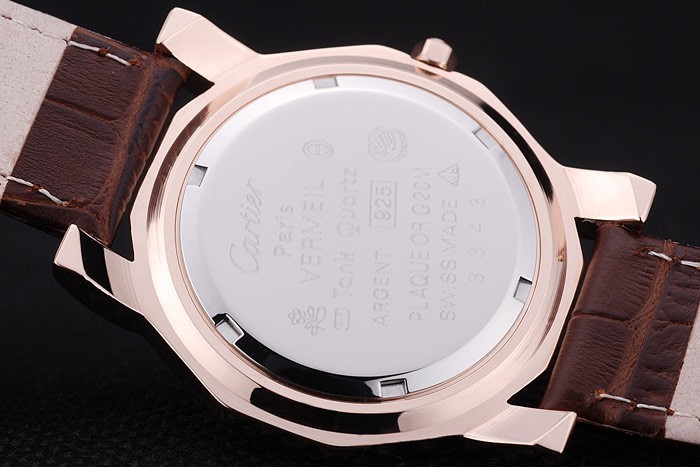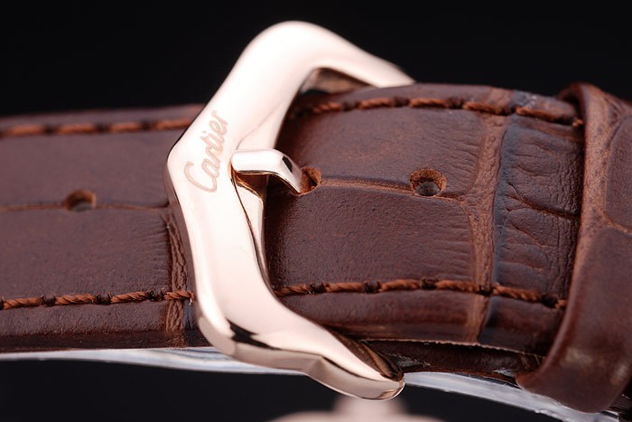 Bracelet de acero inoxidable: El calor en relieve correa de piel de cocodrilo marrón Cartier Cartier con inscripciones de oro rosa de gancho hebilla clasp