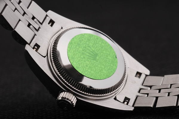 1Back: Empuje en acero inoxidable de nuevo con la etiqueta engomada Rolex verde y markings