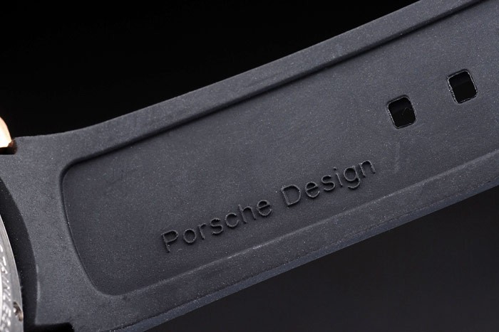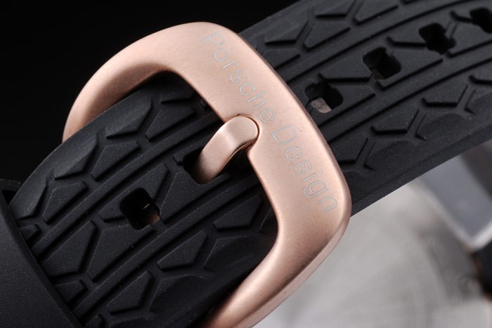 Bracelet: correa de caucho negro Tyre-ranura con el calor en relieve sello Porsche y gancho hebilla de cierre de oro rosa con Porsche inscription