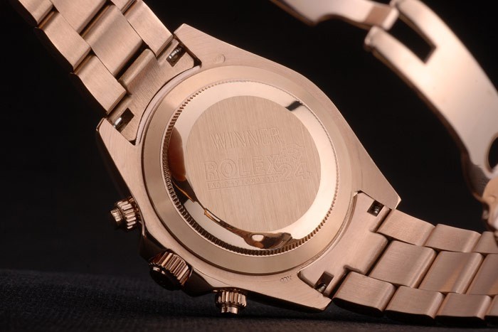 Crown: rosa de 18 quilates chapado en oro de la corona calado con el logotipo de Rolex y una corona pulsador a cada lado de it