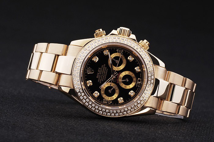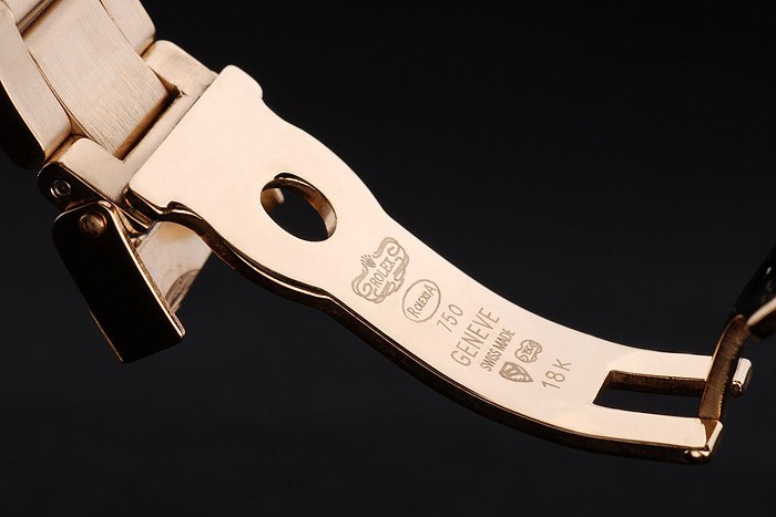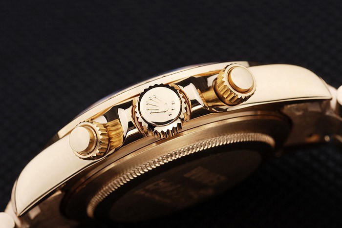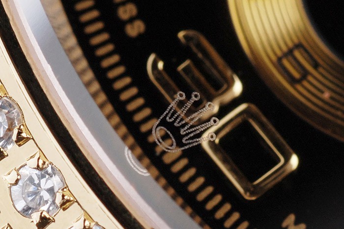 Crown: corona del oro calado tonos con el logotipo de Rolex y dos coronas adicionales a ambos lados de it