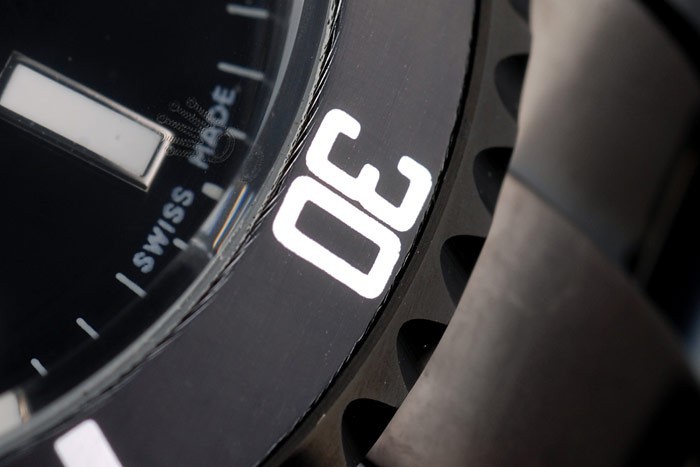 Bezel: Negro bisel esmaltado calado con el índice y el número arábigo markers