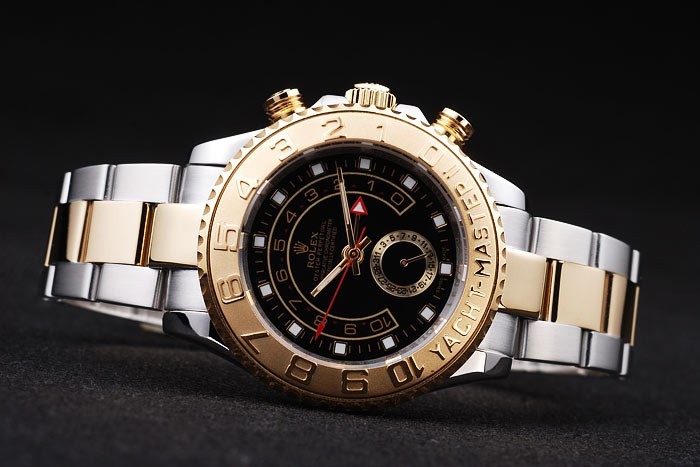 Bezel: chapado en oro rosa bisel cutwork unidireccional con 1 a 10 marcas y Yacht Master grabado en un azul Tipo esmaltado background