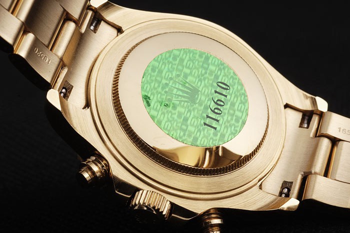 Volver: Rose-oro de empuje en la parte trasera con el verde Rolex logo stamp