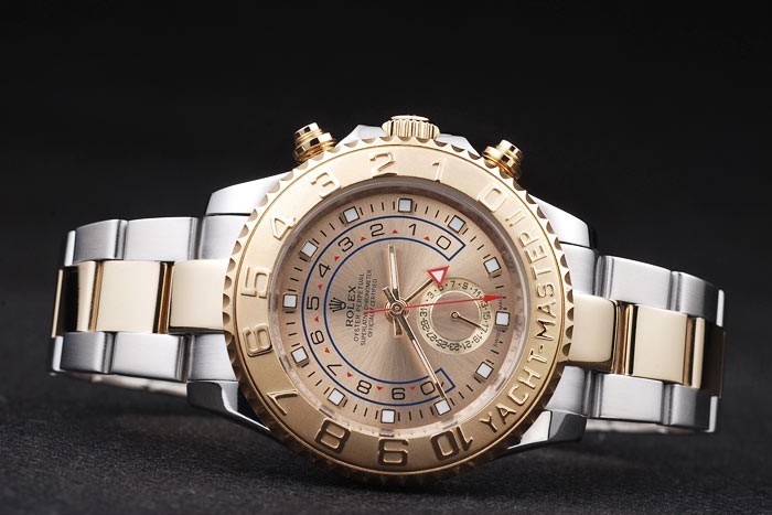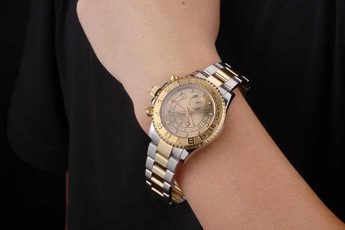 Bezel: oro amarillo plateado bisel unidireccional calado con 1 a 10 marcas y Yacht Master grabado