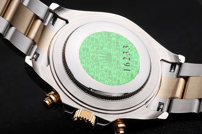 Volver: Acero inoxidable pulido push-en la parte trasera con el verde Rolex logo stamp