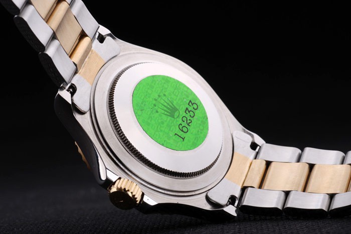 Volver: Acero inoxidable empuje en caso de vuelta con el verde de Rolex grabado stamp