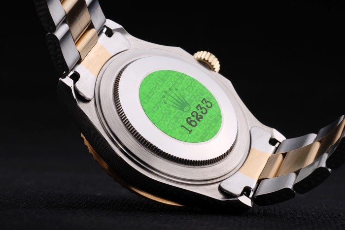Volver: Acero inoxidable empuje en caso de vuelta con el verde de Rolex grabado stamp