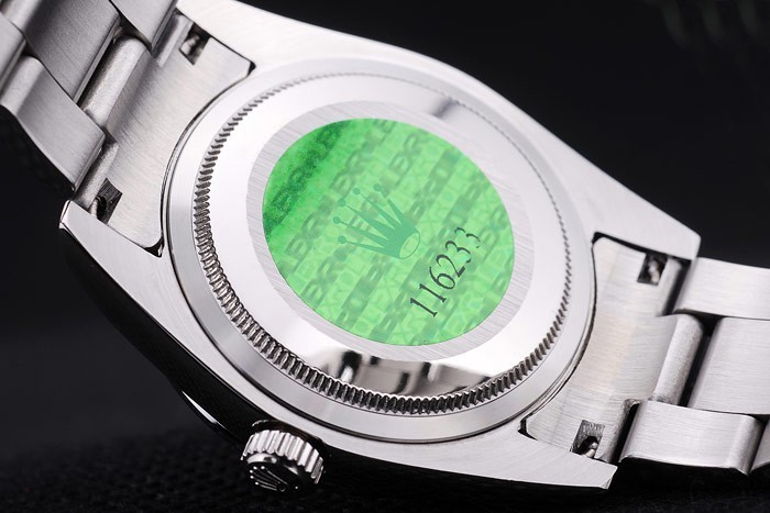 Volver: Acero inoxidable complemento de vuelta con verde Rolex stamp