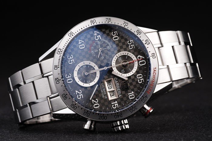 Tag Heuer Carrera suizo Dial taquímetro Bisel de acero inoxidable a cuadros de Brown