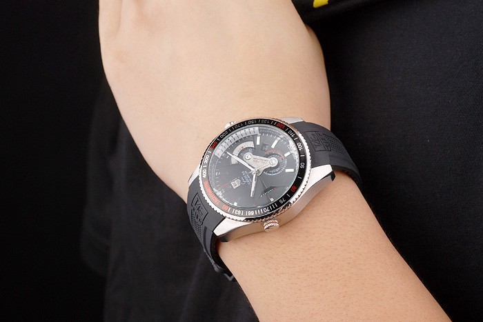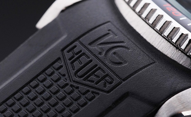 Bracelet de acero inoxidable: textura correa de caucho negro con relieve de calor sello Tag Heuer y grabado gancho hebilla clasp