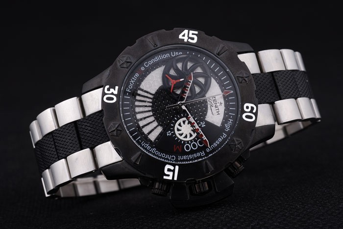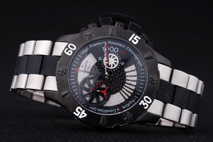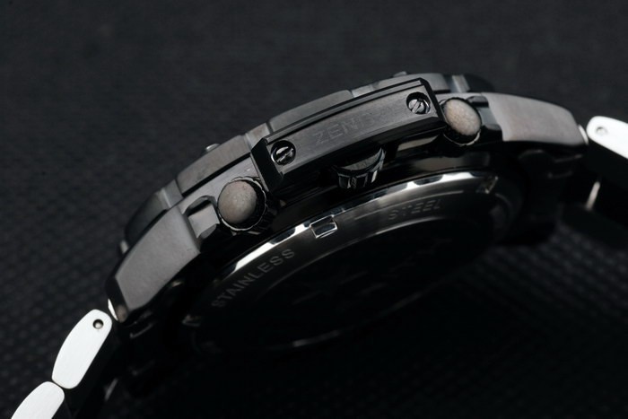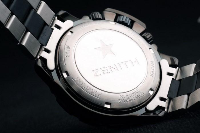 Volver: empuje de acero inoxidable en la parte trasera con Zenith inscriptions